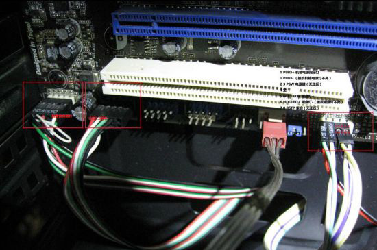 对于走线,我们可以参考之前拍摄的照片,也可以按照主板说明书中的图示进行安装。图中的插针依次为机箱前置音频、USB、机箱接线,具体需要参考主板的说明书。如果找不到说明书,可以在主板品牌的官方网站上下载对应的电子版说明书。