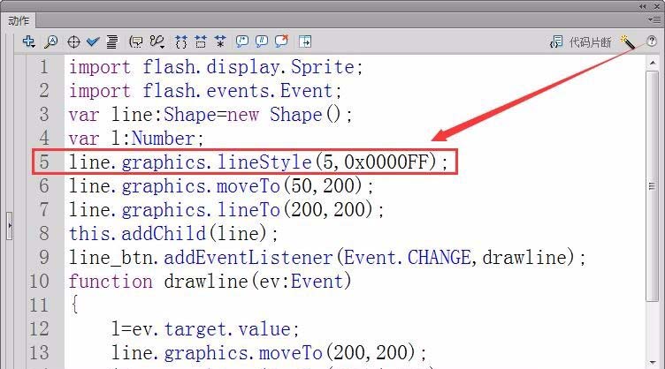 5、设置所绘制线条的宽度和颜色,宽度为5,颜色值为0x0000FF。