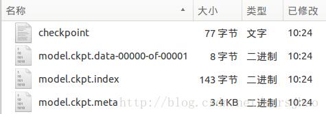 checkpoint文件保存了一个录下多有的模型文件列表,model.ckpt.meta保存了TensorFlow计算图的结构信息,model.ckpt保存每个变量的取值,此处文件名的写入方式会因不同参数的设置而不同,但加载restore时的文件路径名是以checkpoint文件中的“model_checkpoint_path”值决定的。