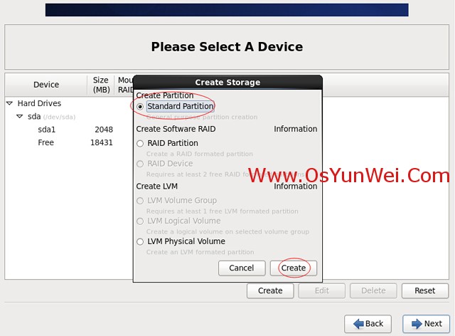 选择标准分区Standard Partition,点创建Create