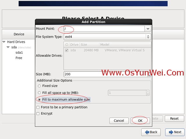 选中空闲分区Free,点创建Create