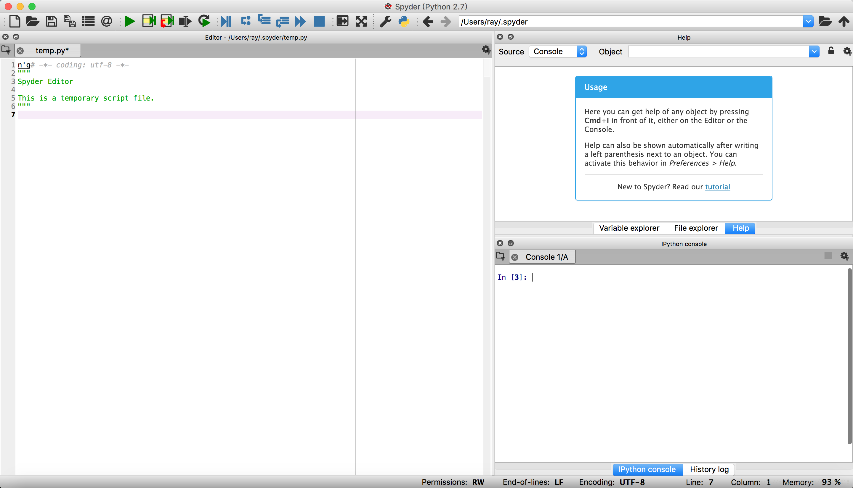 Spyder是Python一个简单的集成开发环境,和其他的Python开发环境相比,它最大的优点就是模仿MATLAB的“工作空间”的功能,可以很方便地观察和修改数组的值。