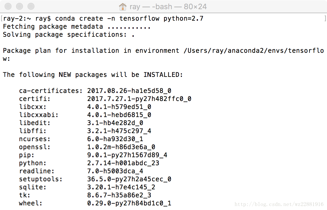 conda create -n tensorflow python=2.7