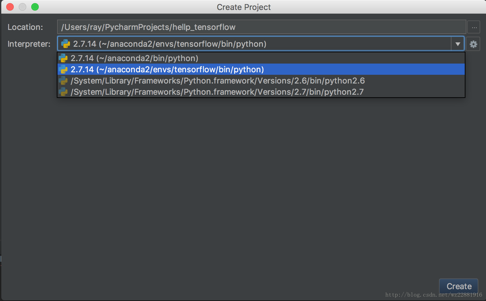 因为是做Tensorflow的开发,所以这里我们只需要选择图中所示的interpreter即可。