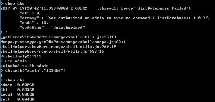[注意]需要在admin数据库下进行认证,否则认证不成功