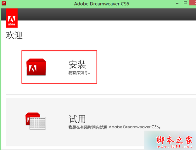 3、选择“ 安装 ”,不要选择“ 试用 ”;