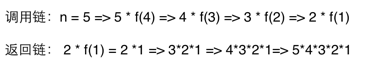结果是10的阶乘。这是一个递归调用,为了简化,我初始化 n=5,则调用链和返回链如下: