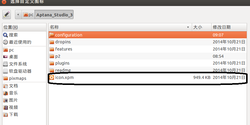 8、找到刚刚Aptana被解压的目标,选择其里面的图标文件icon.xpm