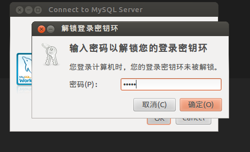 5、之后输入数据库密码root,最好保存密码到Linux的密码链。