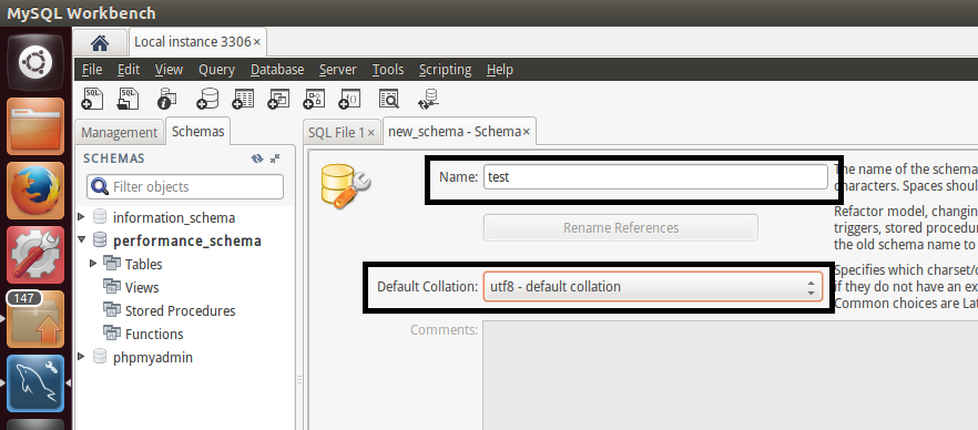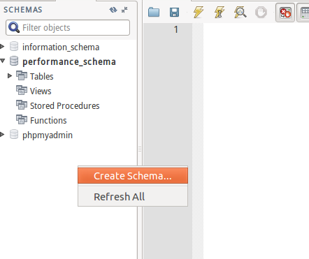 7、打开Mysql之后先如下图,关闭一些没有的东西。真正有用的,是下面的Schemas,也就是我们的一堆数据库,也叫策略。如果按键不灵,点来点去这个按钮都没反应,重启一下Ubuntu就正常,虽然非常滑稽,但就是这么奇怪。