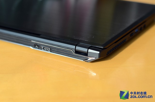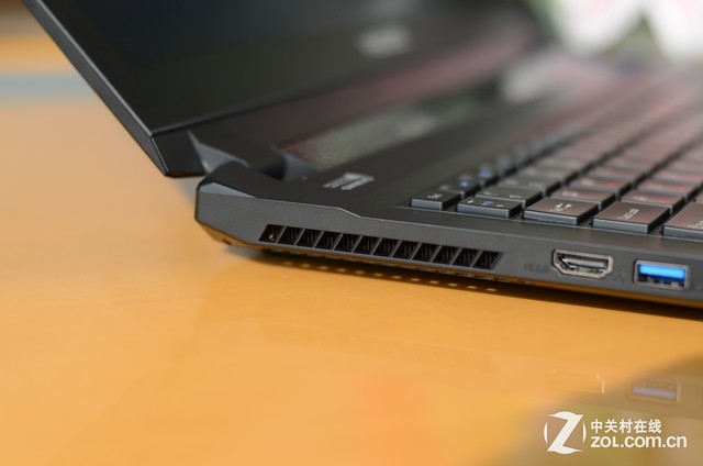 从第一代战神游戏本开始,该系列选用的模具都是棱角鲜明的,战神Z7自然是延续了这一设定。多棱角设计对于一款游戏本来说是有必要的,直线、几何边角在一定程度上凸显出一种科技感,搭配上金属材质机身,给人的总体感觉是十分有料却闷骚的。从战神Z7机身边角的设计上找到一些稍丰富的元素,不再是以往纯色的低调,抛光银边设计使得整机更加活跃。