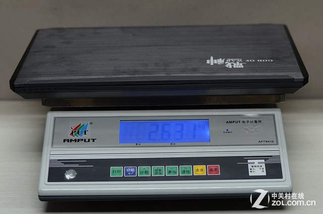 战神Z7并不算轻薄,可也不是太厚,这毕竟是搭载NVIDIA GeForce GTX 970M高端独立显卡的游戏本,为了保证散热效率自然不会使用纤薄机体设计。总的来说,战神Z7的外观看起来还是比较低调的,除了黑色与少量银色以外没有其他亮色搭配,重量方面经过实际测量该机重2.631kg,份量并不小,算是稍轻薄型游戏本。