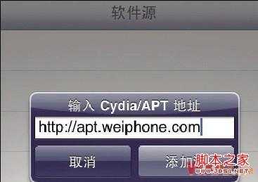 1、在iPad“越狱”后,运行Cydia,点击下方“软件源”图标。依次点右上方“编辑”按钮、左上方“添加”按钮,在跳出的对话框中追加输入“apt.weiphone.com”,最后点添加源即可(图1)。