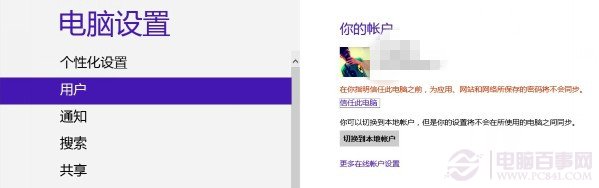 1.把鼠标放在屏幕的右上角弹出设置选项,然后选择更改电脑设置,找到用户选择Microsoft账户登录Win8系统。如果本身就是Microsoft账户登录的话可以直接略过,没注册账户的话,根据提示注册一个即可。