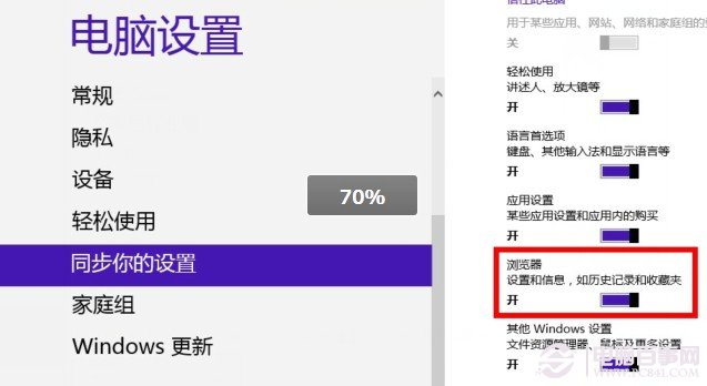 在这样的简单设置后,我们就能实现浏览器的设置和收藏夹的云同步的,只要别的win8系统中用我们的微软账户登录,系统共就会自动联网同步的哦。其实,在win8系统中IE能实现云同步功能,其实主要归功于win8系统本身的云属性,现在QQ聊天记录都能云同步了,微软怎么可能拉下呢,但是这也只能在win8系统下实现,不得不说是个小小的遗憾啊。