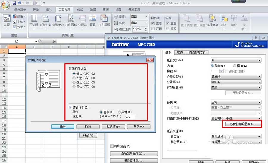 5、再点击双面打印设置,选择需要的打印类型,点击确定使设置生效。