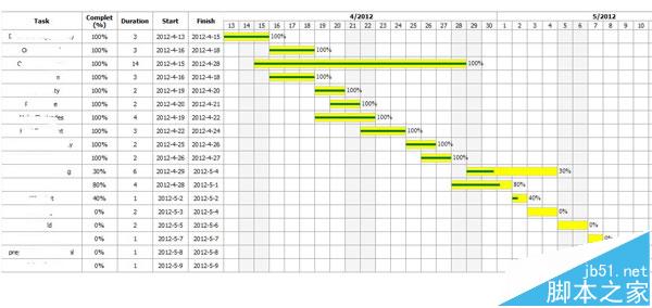 当然还需要做一张项目流程表,包括主要事宜,责任人,时间阶段,当前进度等等,如下: