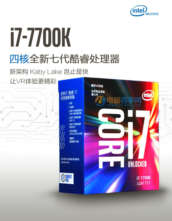 GTX1080Ti显卡作为今年N卡平台的新卡皇,独立显卡售价在5699元左右。对于高端装机玩机或者面向未来的VR玩家来说,既然打算入门顶级GTX1080Ti显卡,对选择CPU也不能含糊,虽然搭配酷睿i3/i5,甚至是AMD八核处理器都行,但基于最佳均衡搭配考虑,最佳还是选择新平台,最新的高端i7 7700K处理器,不仅功耗更低,性能更强,更加入了DDR4内存支持。