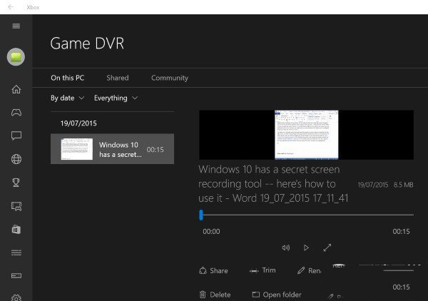 玩家可以在Game DVR选项卡中找到已经录制的视频内容,然后使用简单的编辑功能(比如将视频掐头去尾)。
