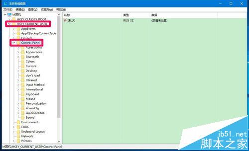 2、在打开的注册表编辑器窗口,展开HKEY_CURRENT_USER\Control Panel;