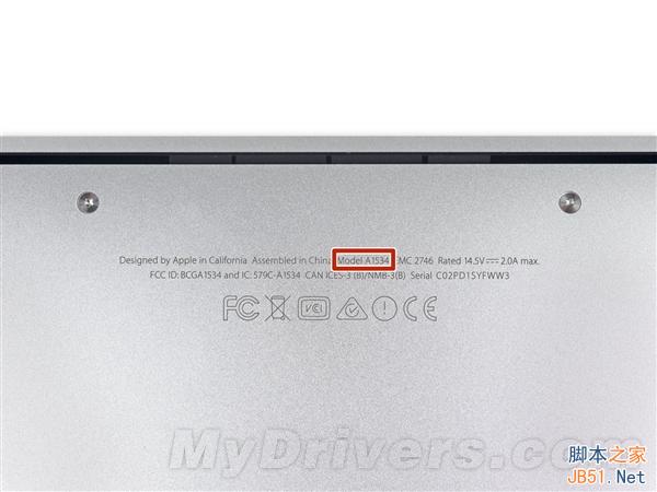 全新MacBook的模具型号为A1534,后壳上仍然使用了Pentalobe螺丝。