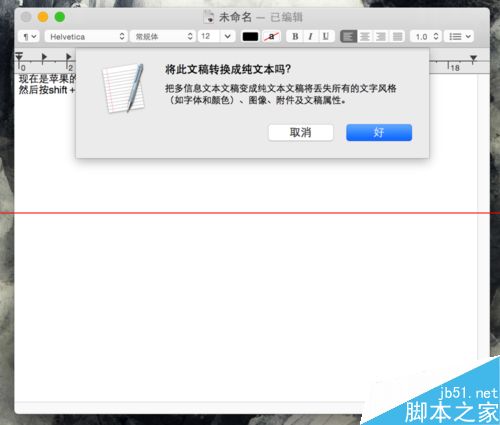 3、然后按快捷键shift+command+T,让文本成为纯文本格式