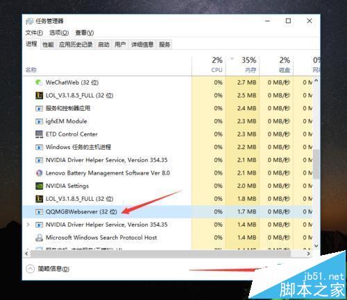 在任务管理器中找到“QQMGBWebsever”这个程序并选中,右键结束这个进程、或在右下角点击结束进程。