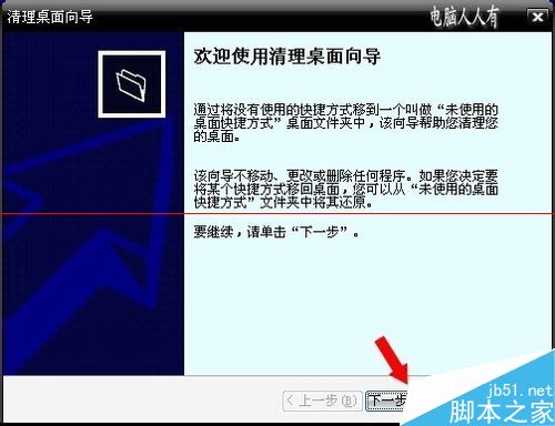 1、右键桌面空白处→排列图标→运行桌面清理向导
