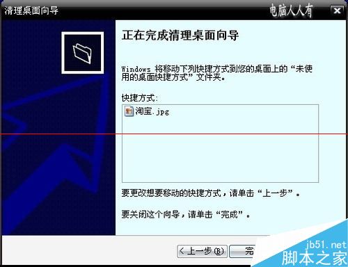 7、点击完成,就会将这个假淘宝的图标移动到未使用的桌面快捷方式文件夹内。