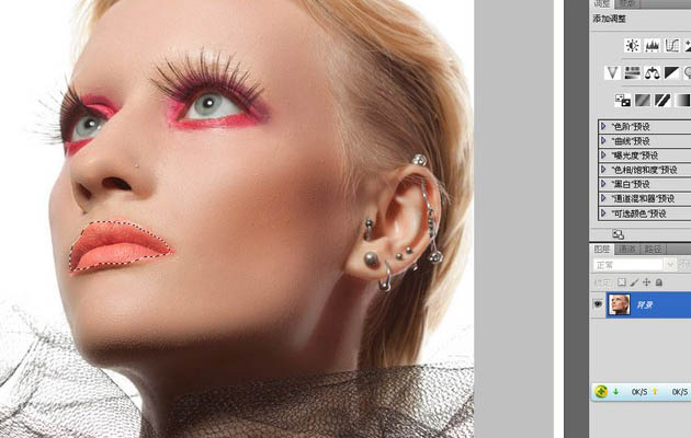 10、用快速选择工具选中嘴唇。