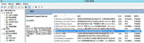 2)在服务设置窗口中,找到“Bluetooth Support Service”服务;
