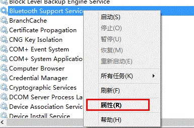 3)在蓝牙服务上点击鼠标右键,打开“属性”;
