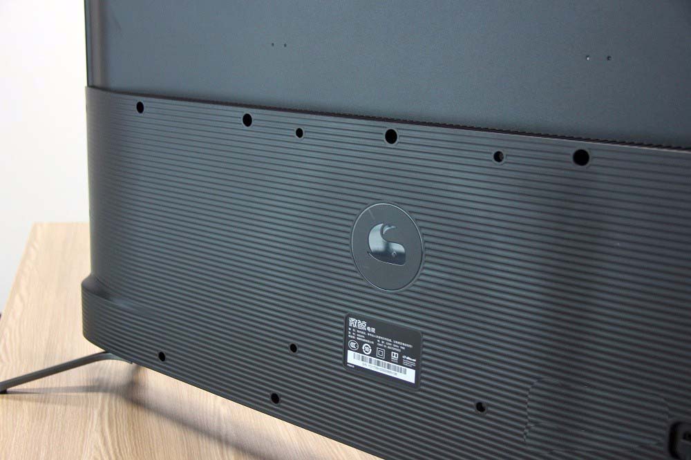 微鲸43D的背部采用了两段式的设计,上半部分的最大特色就是刚刚已经提到的纤薄,而下半部分则是采用了完全不同的横条纹设计,搭配上可爱的小鲸鱼Logo,让原本枯燥刻板的背面多了一份设计感。