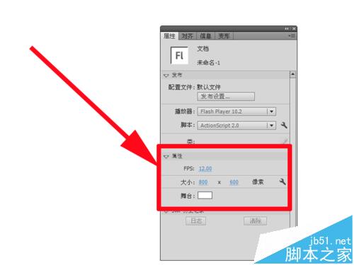 1、启动flash cs5,执行文件-新建命令,新建一个大小为800*600,帧频为12fps,背景颜色为白色的文档。