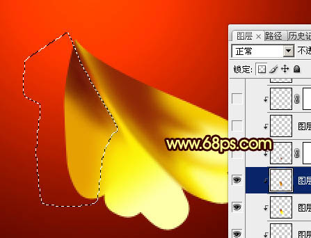 9、新建一个图层,用钢笔勾出左边暗调部分的选区,羽化1个像素后填充淡黄色:#CA9000。