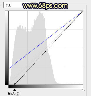 3、按Ctrl + Alt + 2 调出高光选区,按Ctrl + Shift + I 反选,然后创建曲线调整图层,对RGB,蓝通道进行调整,参数及效果如下图。这一步把暗部稍微压暗,并增加蓝色。