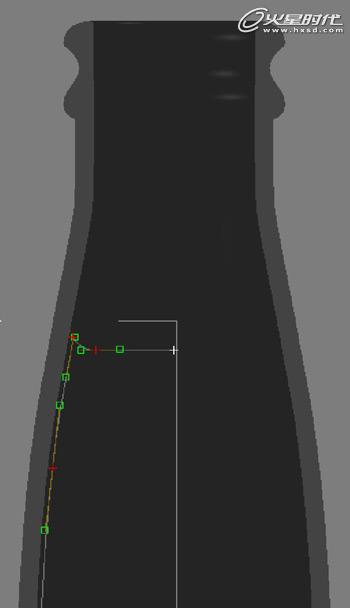 首先,塑造瓶子和液体(啤酒)的形状曲线,可以使用下图进行参考。开始阶段不需要将曲线设定为闭合,因为进行放样后,曲线两端会自动闭合。