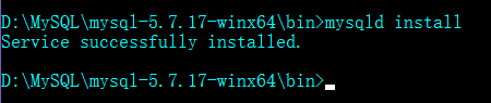 打开mysqld install MySQL运行命令后MySQL安装成功。