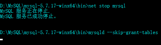 进入到mysql\bin\ 目录下,执行mysqld --skip-grant-tables