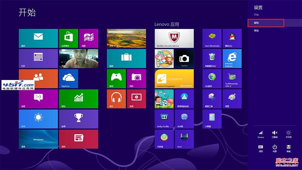 1. 在metro界面将鼠标指针滑动到屏幕右下角,直到出现charm栏,选择“设置”;