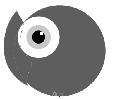 3.用椭圆形状工具绘制一个正圆填充白色,复制此圆Ctrl+T结合着Alt+Shift等比例缩小后更改颜色为灰色,同样再复制后缩小更改黑色,同样再复制一个圆出来更改白色后将几个圆组成眼睛,将四个圆编组命名为:l-eye