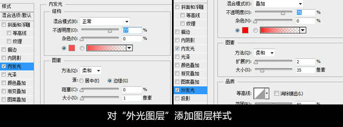 11、对外光图层添加图层样式。