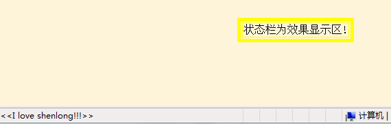 这里演示状态栏文字缩放变化效果,同样基于JavaScript技术,虽然很不起眼的小特效,不过对学习JS来说,还是很有用的。本效果直接运行可能看不到效果,你可以复制代码保存成一个HTML文件,双击后运行可看到效果。
