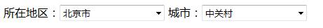 <body onload="init()"> <form name="form1"> 所在地区:<select name="province" onchange="select_change(this.selectedIndex)"></select> 城市:<select name="city"></select> </form> </body>