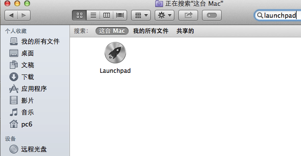 其实,要找回“Launchpad”图标很简单,在你的Finder里面,选择这台Mac,直接搜索“Launchpad”你就会欣喜的发现“Launchpad”出来了,然后将其重新拖到Dock当中就可以了。确实很简单吧?