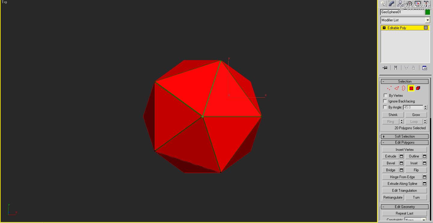 再把球体转化成Poly编辑,全选所有的边线。(图02)