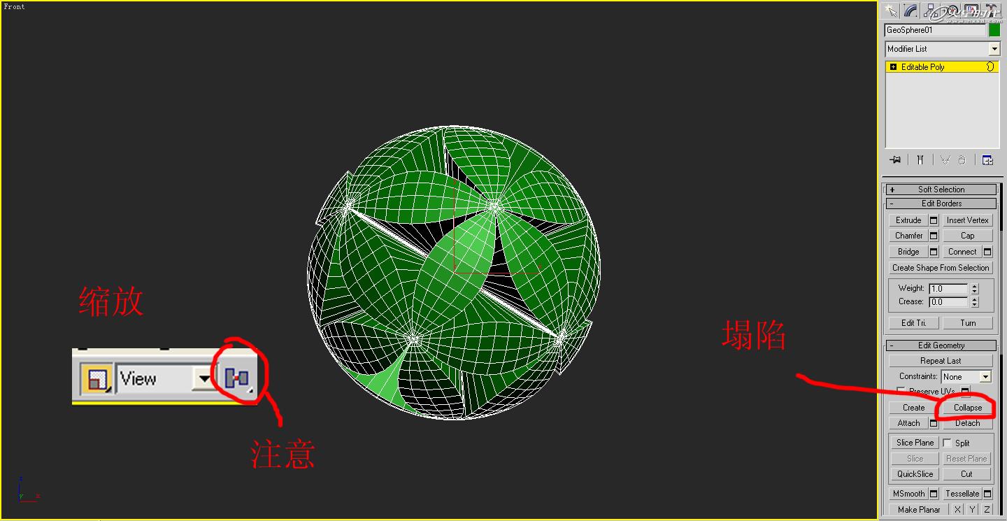 再次利用缩放工具缩放一下,然后再把开方边塌陷一起。(图11)