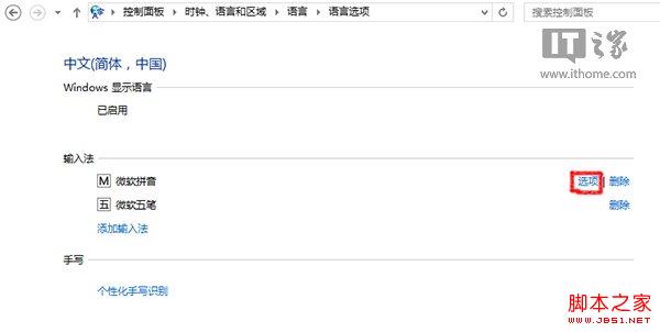 ▲Win8.1控制面板无法设置微软拼音