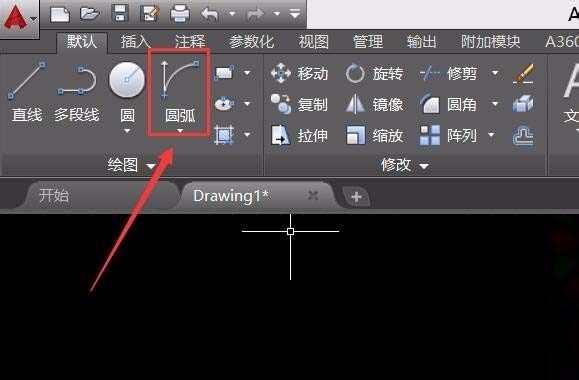 4、绘制好门轴之后我们在再找到圆弧选项,如图所示: