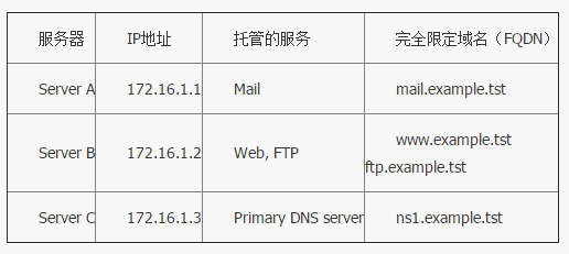 我们将会配置一台主域名服务器,并添加上表中必要的域和DNS记录。